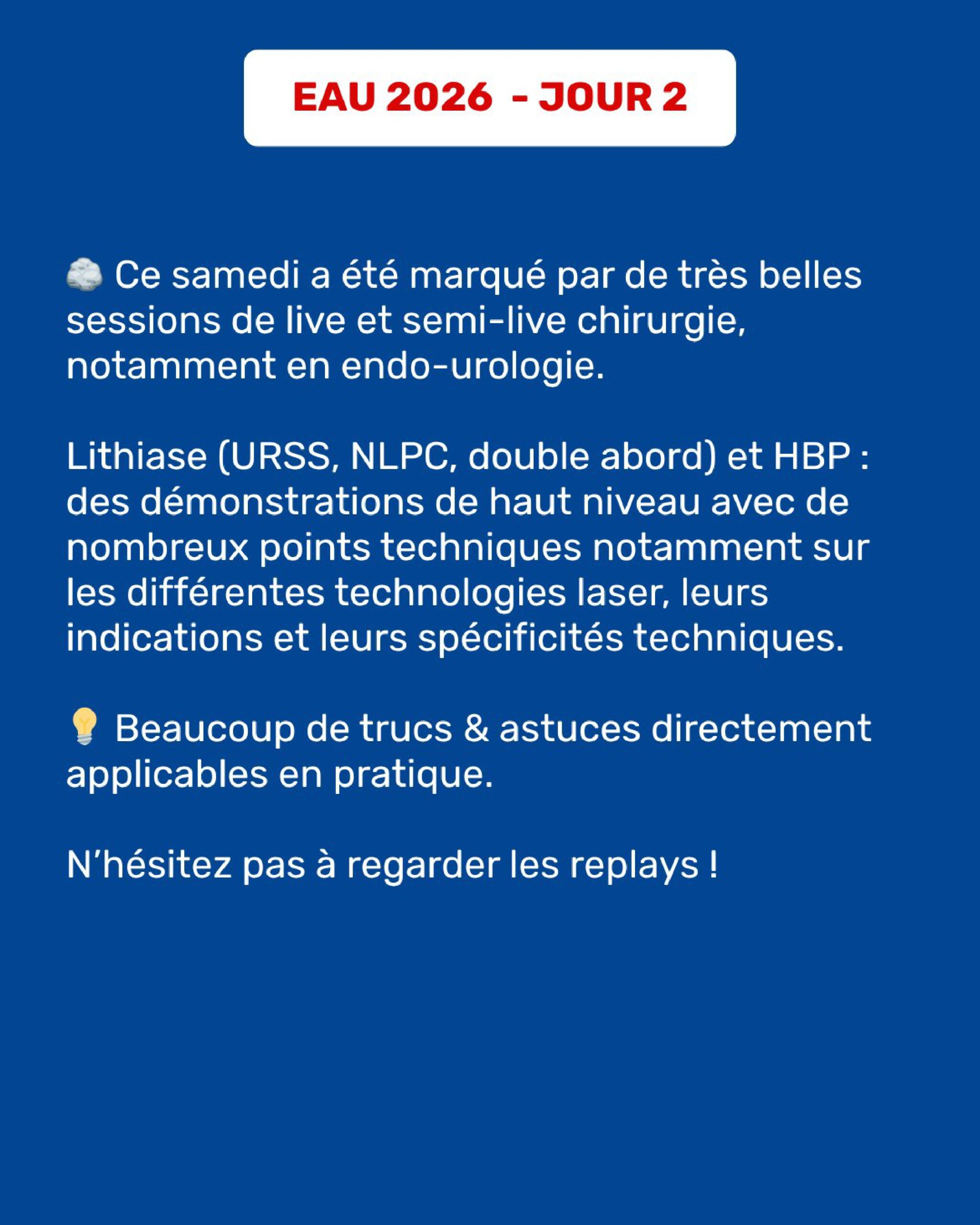 EAU 2026 | Le Congrès Européen d’Urologie s’est déroulé le week-end dernier à Londres. Découvrez le résumé des principaux messages partagés durant ces 3 jours. ⬇️